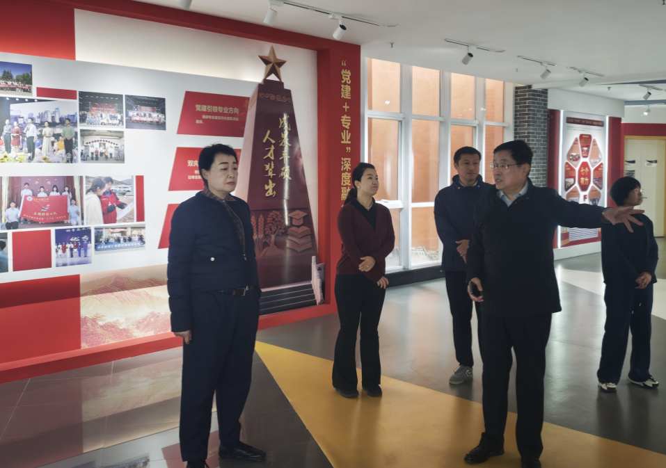 访谈前,李校长实地考察了新闻传播学院质量文化墙建设。李校长指出,新闻传播学院质量文化墙建设搞得很好,各板块设计风格统一又各具特色,内容丰富,能够较好地展示学院办学特色、教学成果和建设亮点。李校长建议在党建板块可以增设一些桌椅,为学生学习提供更多便利。
